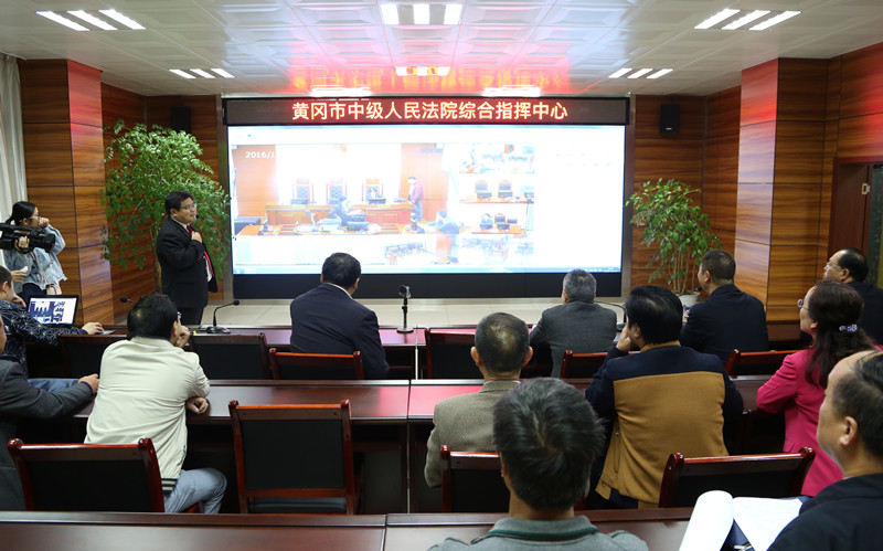 图四:视察组察看市中院综合指挥中心