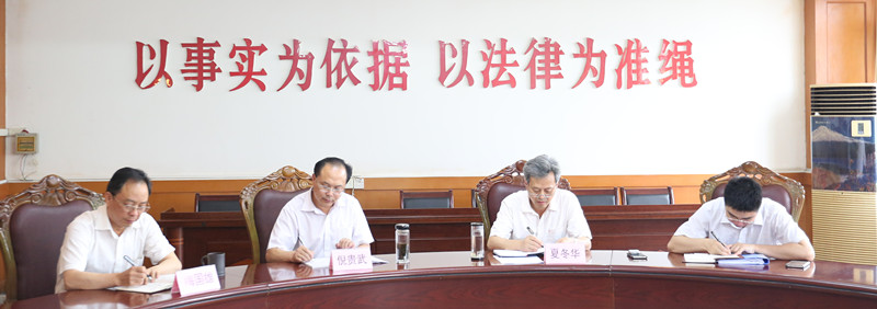 (文:姚文崇 图:张瑾)6月7日下午,市委“两学一做”学习教育第六督导组副组长郑齐平一行3人来市中院检查指导工作。市中院党组副书记、副院长倪贵武,党组成员、政治部主任夏冬华和党组成员、工会主席梅国雄陪同检查。