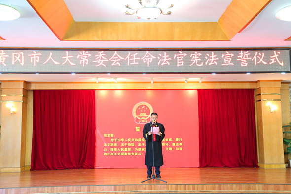黄冈市人大常委会副秘书长柯昌荣,市人大常委会代工委主任刘珍德,市人大内司委负责人黄新国,市人大常委会法工委副主任江海松,市人大常委会研究室副主任徐锐以及市人大常委会有关委室同志出席宪法宣誓仪式。市中院全院干警参加宪法宣誓仪式。