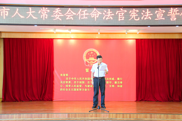 在市中院党组书记、院长肖笛的领誓下,24名新调整任命法官统一身着法袍、手执宪法,整齐列队面向国旗高举右臂庄严宣誓。“我宣誓:忠于中华人民共和国宪法,维护宪法权威,履行法定职责,忠于祖国、忠于人民,恪尽职守、廉洁奉公,接受人民监督,为建设富强、民主、文明、和谐的社会主义国家努力奋斗!”句句铿锵有力,字字掷地有声,宣誓声响彻会场。