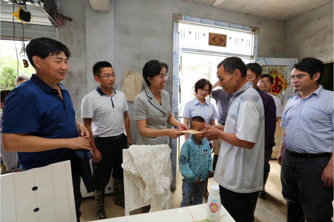 图四:李静院长为受灾村民送上慰问金2