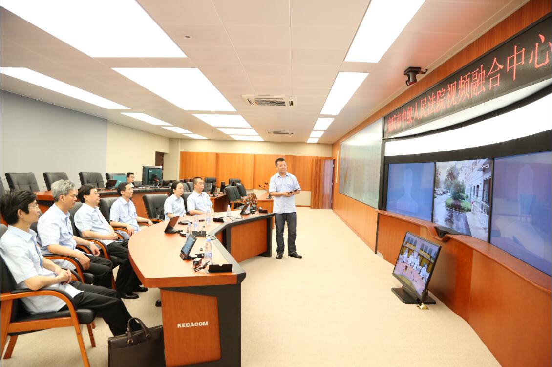 图三:贾石松一行观摩安庆中院信息化平台演示