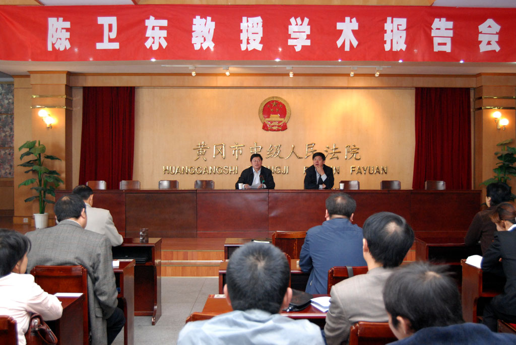 二OO七年十月二十三日上午,黄冈中院邀请了中国人民大学法学院博士研究生导师、北京市诉讼法学研究会副会长陈卫东教授在中院十楼会议室举行了法学讲座。