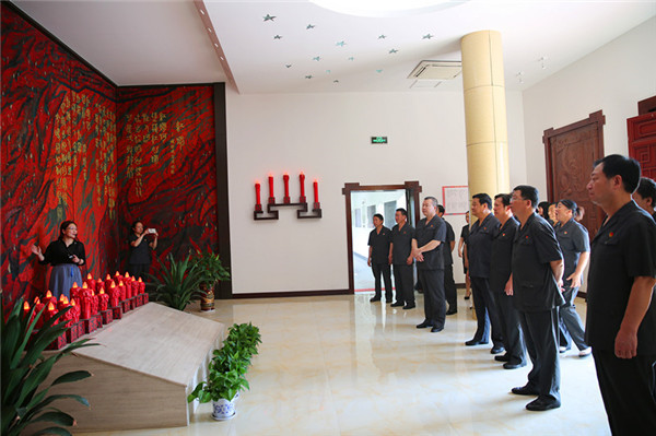 活动中,两个支部的党员参观浠水县闻一多纪念馆,接受爱国主义教育。首先徐晓林和袁干共同向闻一多纪念馆授牌,在闻一多先生铜像前,党员们面向党旗,举起右手,重温入党誓词,誓言激荡心间,再一次增强了党员们的使命感、责任感。紧接着党员们观看了闻一多先生《最后一次演讲》影像,学习了解闻一多先生生平事迹和革命精神,继承发扬闻一多先生“莫问收获,但问耕耘”的红烛精神。