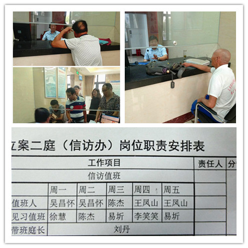 今年7月以来,立案二庭积极加强内部管理,将各项工作目标任务进行分解细化,针对每个同志的特点实行全员岗位责任,实行“以老带新”传帮带模式,以老带新,以新促老,助力推进信访信息化建设、信访队伍建设,法治信访建设,效果明显。