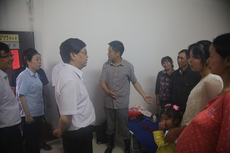 贾石松一行冒雨徒步察看了该村辖区内的主要河流汇聚处涨水和堤坝水位情况,并督促镇村干部要24小时轮班值岗,防范山洪爆发的可能。随后,贾石松一行还到白铺村村委会办公室临时安置点看望、慰问了转移的受灾村民,并鼓励他们要坚定信心、度过难关。