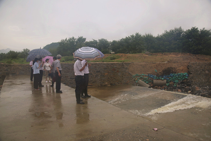 贾石松一行冒雨徒步排查防汛抗洪工作