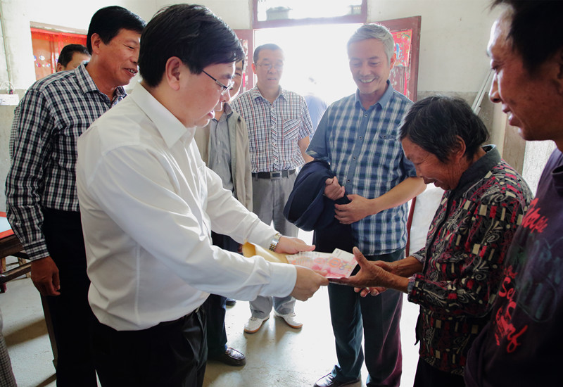 市中院在家院领导和中层正职以上干部分为三个扶贫慰问组,分别深入结对帮扶困难户家中,将筹集的10000元捐助款送到困难户手中,余下的18500元捐助款将作为村级扶贫发展基金。