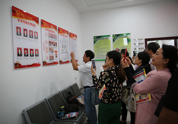 图四:视察组参观巴河法庭家事审判试点相关制度介绍