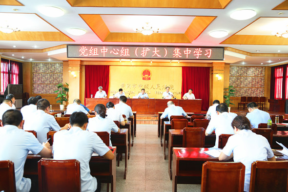 (张瑾、陈傲)8月28日,市中院组织党组中心组(扩大)集中学习,专题学习传达了全市创建国家卫生城市总结暨创建全国文明城市工作动员大会会议精神,并就助力“全国文明城市”创建工作进行了动员部署。市中院院领导、县级干部、机关党委委员、支部书记、中层正职参加了学习。