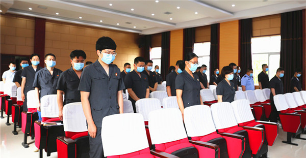 会议开始前,参会人员集体肃立,为疫情防控期间因患新冠肺炎逝世的原党组成员、审判委员会专职委员张利民同志默哀三分钟。