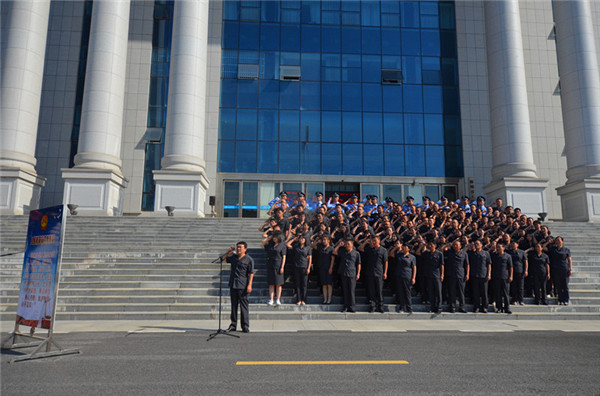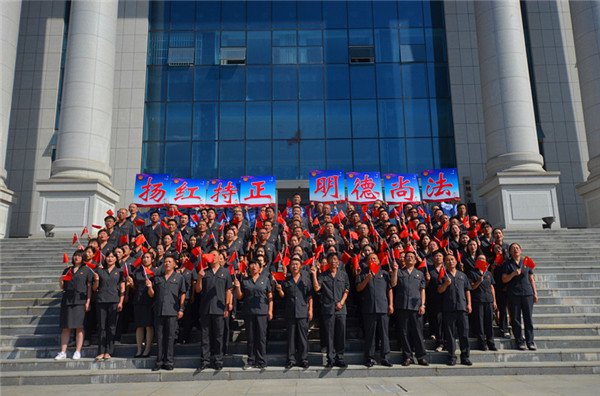升旗仪式完毕后,全体干警齐声合唱《我和我的祖国》,深情表白伟大的祖国母亲,不忘初心,牢记使命,努力让人民群众在每一个司法案件中感受到公平正义,以公正高效廉洁司法献礼祖国70华诞。
