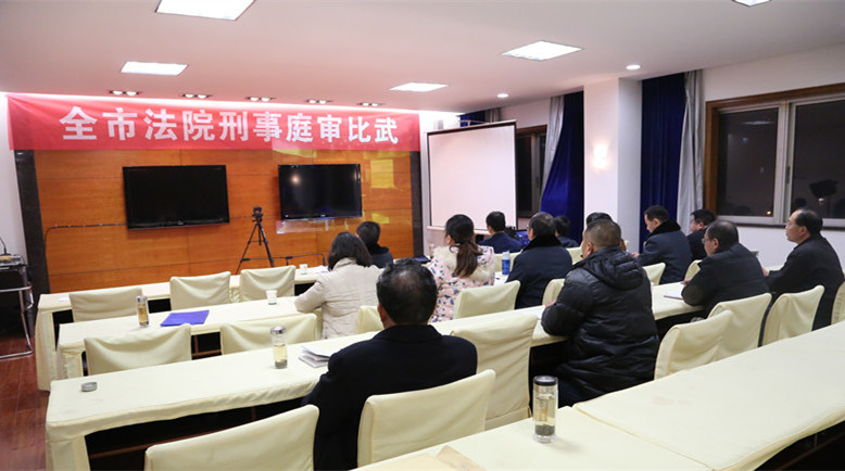 (文:李笑笑,编审:陈傲)为进一步贯彻落实党的十八届四中全会和全国法院第六次刑事审判工作会议精神,彰显以审判为中心的司法理念,全面提升全市法院刑事审判队伍综合素质和业务技能,12月23日至24日,市中院组织开展全市法院刑事庭审评比活动。市中院党组副书记、副院长倪贵武,审委会专职委员陈武军、田志敏和各基层法院刑庭庭长、市中院刑一庭、刑二庭、未成年人审判庭、审监一庭、审管办相关人员参加了此次评比活动。