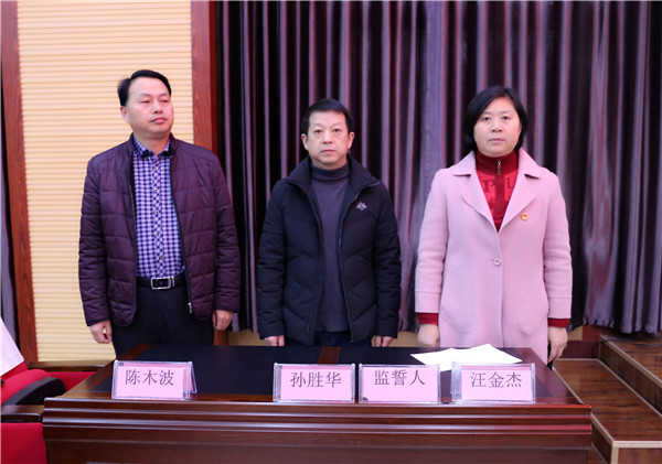 根据全国人民代表大会常务委员会关于实行宪法宣誓制度的决定和《人民陪审员法》,团风县人大常委会和县人民法院、县司法局组织新任职的28名人民陪审员、团风法院3名庭长举行向宪法宣誓仪式,宣誓仪式在团风法院审判楼三楼会议室举行。县人大常委会副主任汪金杰、县人民法院院长孙胜华和县司法局局长陈木波作为监誓人出席了宣誓仪式。宣誓仪式由团风法院党组成员、政治处主任陈建新主持。