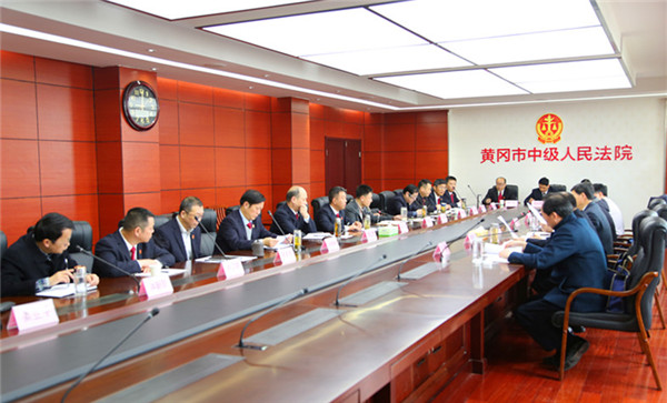 3月20日上午,黄冈市人大常委会党组成员、副主任袁金鹏率内司委主任委员黄新国、机关党组成员方实和内司委副主任委员孙林、陈卫东一行5人到市中院座谈调研。
