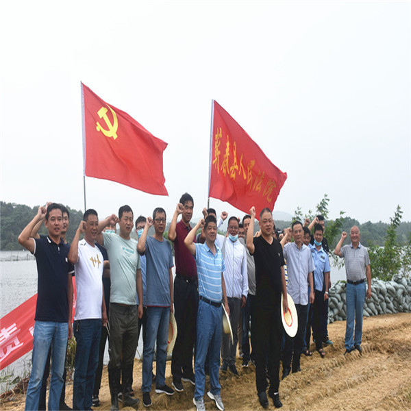 蕲春法院始终把防汛抗灾作为人民法院“政治体检”的重要实践,作为检验党员干部践行初心使命的重要考场。为了进一步调动党员干部的积极性,蕲春法院在塞尔湖值守点成立由56名党员组成的临时党支部,设立支部书记、组织委员、纪检委员和2个党小组。在阵地上,高高飘扬的鲜红党旗指引着干警勇于拼搏、敢于担当。