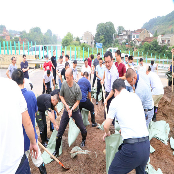 7月9日上午8点,蕲春法院党组副书记、副院长王文浩,党组成员、副院长袁小军,党组成员、工会主席刘琳,党组成员、政治部主任龚腊春,党组成员、执行局局长陈旭东迅速带领应急抢险组的51名男干警奔向蕲州二里湖堤坝险段。进入阵地后,干警们马上分成装填、搬运、筑堤三个小组,火速投入抢险战斗。装填组干警奋力挥锹、抢扎沙袋,搬运组负重奔走、步履匆忙,筑堤组快速应接、有序码放。在堤坝阵地上,干警们没有一个叫苦,没有一个喊累,大家不顾脚下泥泞,不怕挥汗如雨,排起一条长龙,进行沙袋接力。热火朝天的场面感染了附近的群众,过往的司机纷纷鸣笛以示敬意,不远处的居民也对衣衫湿透的法院干警称赞不已。