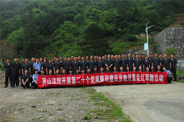 5月17日,英山法院开展第二十个党风廉政建设宣教月重走红军路活动,特组织100多名干警到英山县陶家河乡牛背脊骨红二十五军战场遗址,瞻仰革命遗迹、追寻红色足迹、锤炼党性修养、接受廉政洗礼、筑牢纪律防线。让干警不忘初心、牢记使命,缅怀先烈、奋发有为。