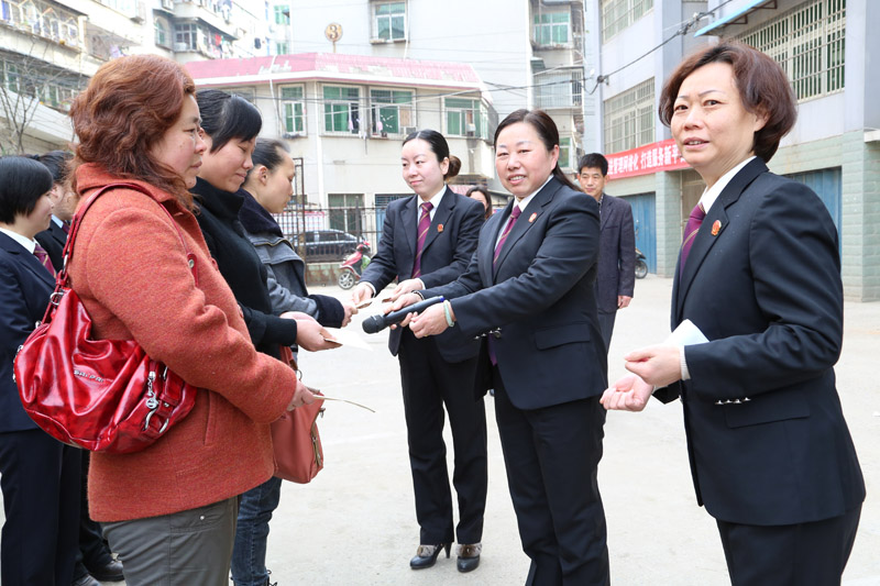 (文:张瑾 图:陈新明)为了贯彻党的十八大和省委、市委妇女工作会议精神,纪念“三八”国际妇女节103周年,3月7日,市中院女法官协会、妇委会组织部分女法官开展走基层送法律和走访慰问单亲母亲活动。市印染社区党组书记章耀华和市中院女法官协会会长刘兰萍分别致辞。