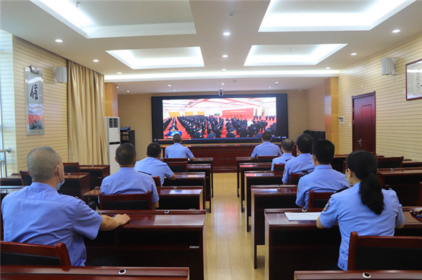 会议集中收看了习近平总书记向中国人民警察队伍授旗并致训词仪式,在红安法院司法警察大队队长赵胜福的带领下,全体法警高举右拳庄严宣誓。