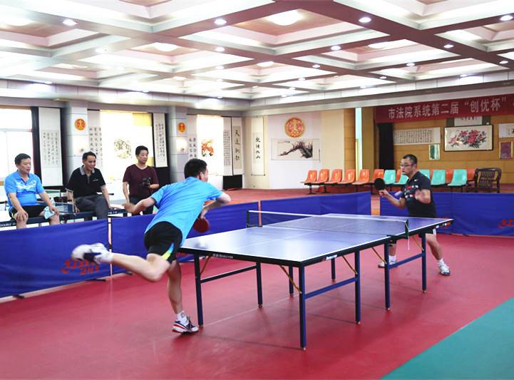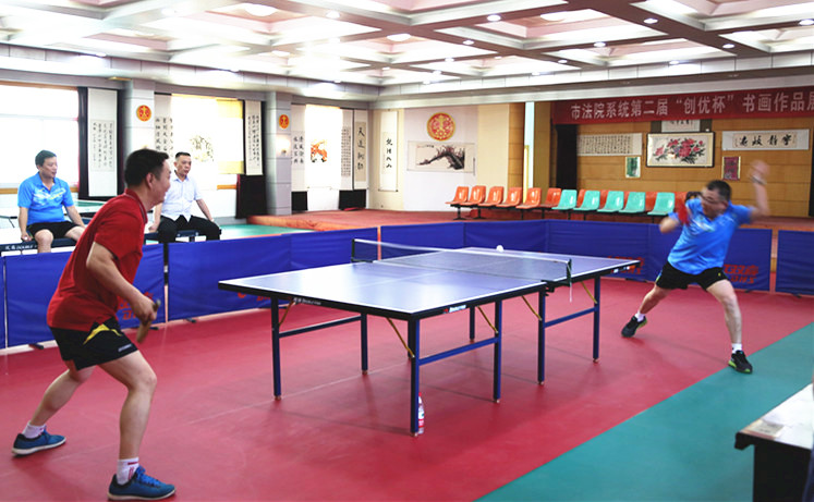 (文/图:张瑾)6月16日,全市法院乒乓球擂台赛在市中院举行,攻擂方武穴法院代表队挑战擂主市中院代表队。比赛中,参赛队员本着友谊第一比赛第二的原则,奋力拼搏、团结向上,充分发挥各自优势,赛出了水平,赛出了风格,赛出了友谊。
